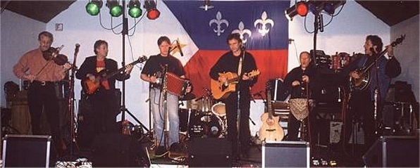 Des Fais Do-Do aus Holland machen den Auftakt zum 2. Festival. Traditionelle Cajunmusik gemischt mit Blue-Grass Elementen. Bert Hek (Accordion, Mandoline, Gesang), Martin van Laar (Waschbrett, Banjo) und Derk Habers (Bass, Gitarre) eröffnen zu dritt das Programm mit einer traditionellen Version des ‚Melville Two-Step’. Cajunmusik wie man sie schon vor hundert Jahren auf einer porch irgendwo in Louisiana gespielt und gehört hat. Dann kommen die anderen drei Musiker, Henk Leeuwis (Gitarre, Gesang), Bennie Stortelder (Fiddle, Gesang) und Rinus Wilderink (percussion) dazu. Durch ihre Vielfalt an Instrumenten erreicht die Band auch Zuhörer welche erstmal keinen Zugang zur Cajunmusik haben. Mit Gassenhauern wie ‚Bosco Stomp’, ‚Parlez nous à boire’ und ‚La valse criminelle’ bringt die Band aus Enschede dann den Saal zum kochen.. Ungewöhnlich an Des Fais Do-Do ist der Einsatz von Banjo und Mandoline. Nur wenige Cajunbands nutzen diese Instrumente. So klingen manche Titel wie Blue Grass. So auch der Titel ihrer ersten CD: ‚Mardi Blue Grass’. Die zweite CD der Band mit dem aktuellen Programm wurde im Juli 2002 veröffentlicht. Mit dem Titel ‚Eddie’s Tire Service’ ist es eine hommage an den leider im Jahre 2001 im Alter von 49 Jahren verstorbenen Cajunmusiker Eddie LeJeune, mit dem die Band freundschaftlich verbunden war und der auch als Gast auf der CD zu hören ist. Getreu ihrem Motto: ‚Gemütlichkeit kennt keine Zeit’ (Ihre Auftritte erstrecken sich manchmal bis zum Morgengrauen) hätten sie auch bis Sonnenaufgang gespielt. So aber ist das mitreißende ‚J’étais au bal’ ihre wohlverdiente Zugabe, denn da scharrten auch schon Zydecomotion mit den Hufen.