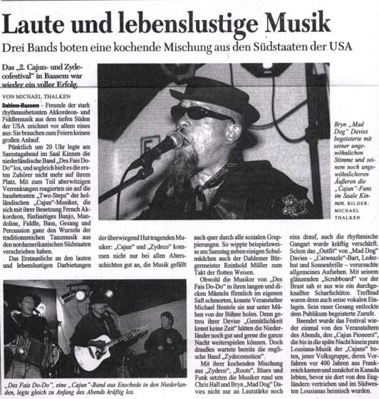 2. CAJUN & ZYDECO FESTIVAL 2002 - Presse- Kritik / Pressreviews