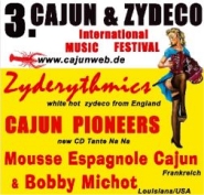 Wer bis dahin nicht warten kann, sollte im Januar nach Gloucester-England, im Juni nach Raamsdonksveer-Holland und im August nach Saulieu-Frankreich fahren. Diese drei Orte beherbergen die wichtigsten Cajun & Zydecofestivals in Europa und bieten bis zu drei Tagen erstklassige Bands aus Europa und USA. Im Oktober treffen wir uns dann wieder in Baasem und Unna zum 4. Cajun & Zydecofestival.