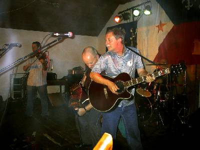 Auch hier gab es von Anfang an Highlights. Außer der Stammbesetzung mit Luitger Fräger, (Akkordeon,Gesang), Hartmut Hegewald (Fiddles , Gesang), Klaus Warler (Gitarre) , Olaf Markewitz (Schlagzeug) und Michael Bentele (Bass) gab es Unterstützung von zwei weiteren Geigern. Johannes Epremian von der Gruppe ‚Le Clou’ und der Niederländer Will Pieters von der ’Down Town Cajunband’ erweiterten die Cajun Pioneers zu einem Cajunorchester. Drei Geiger in einer Band ist selten und so wurde auf Teufel komm raus gefiddelt. ‚Amedee Two-Step, ‚Hicks Wagon Wheel Special’, Acadian Two-Step’ alles Traumnummern für Geiger wurden so zu wahren fiddle Feuerwerken. Aber auch Luitger Fräger an den verschiedenen Akkordeon lies sich nicht lumpen. Auch zu später Stunde flogen die Finger über die Tasten und Knöpfe, dass es eine wahre Freude war.